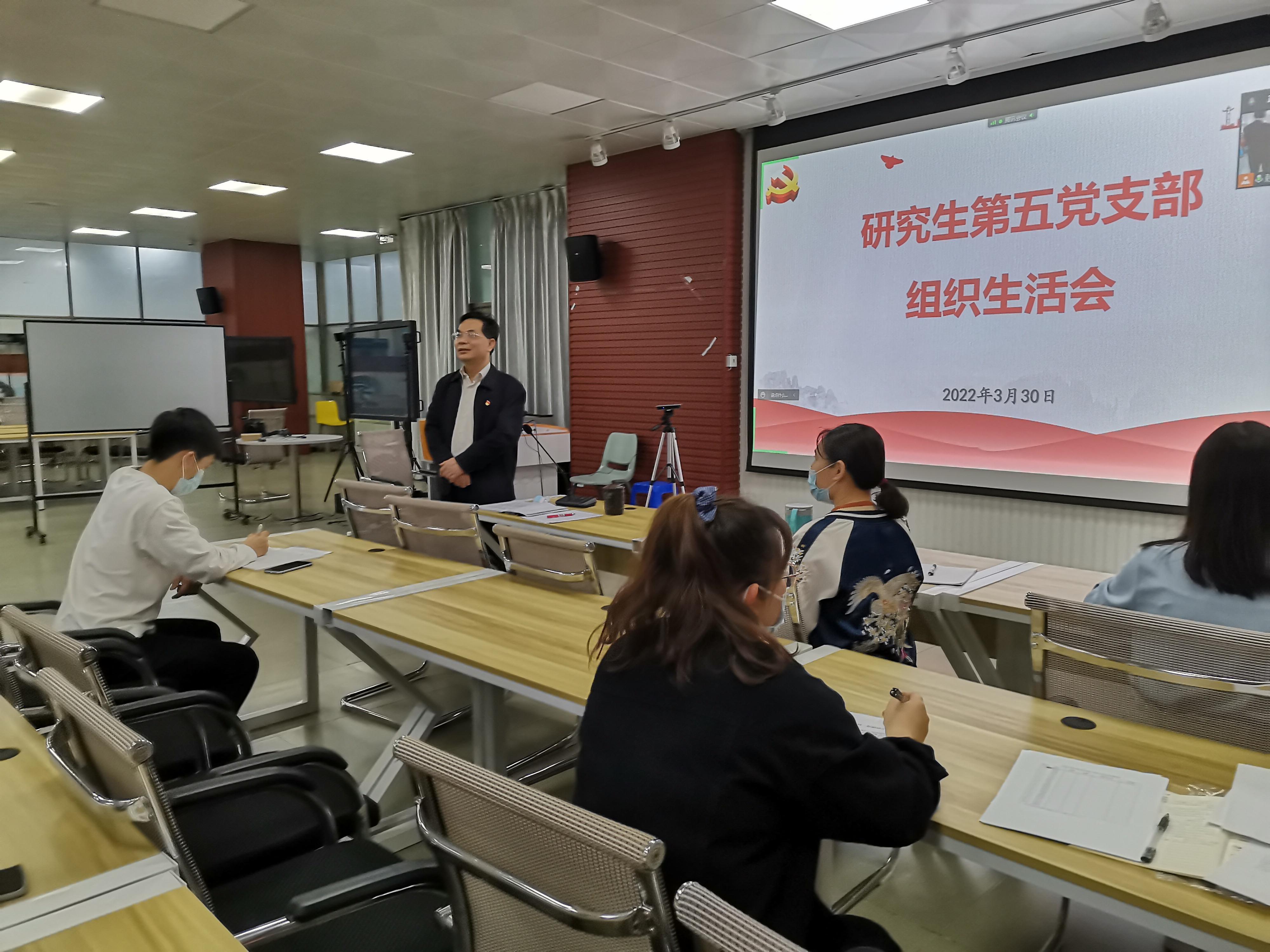 会上,首先由支部书记覃希老师为支部同志讲授本季度党课《遵纪守法 做优秀的老员工》,覃老师强调:老员工党员在学习、工作和生活中要时刻严格恪守党的纪律规定,提高廉洁自律的自觉性,同时带领身边同学们一起成长。接着,覃希老师组织与会同志开展2022年3月主题党日活动。活动以观看“2022年两会会议精神”相关视频、参会同志发表学习心得体会的形式展开。