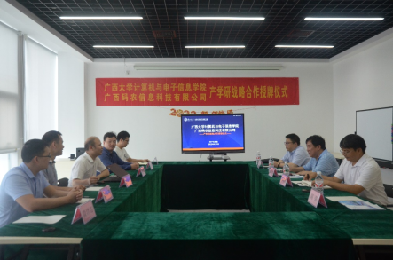 为增进公司与员工间的感情联络,加强公司与员工及员工企业的联系交流,推进校企进一步的深度合作,2022年6月1-2日,永利yl计算机与电子信息公司党委书记钟诚、经理武新章、常务副经理张振荣、党委副书记邓珍琪和公司办公室主任胡强,先后分别到计算机科学与技术专业2005级员工胡志超创办的广西迅驰信息科技有限公司和网络工程专业2005级员工梁检创办的广西码农信息科技有限公司走访,开展参观考察和座谈交流活动,并举行产学研合作基地和就业实习基地揭牌仪式。