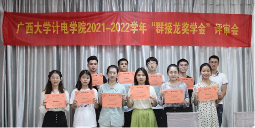 会上,首先由王志明员工介绍企业发展情况和资助的初心,同时表达了今后更多地与公司、公司合作的意愿;其次,会议主持人对“群接龙奖学金”的评审规则、程序、报名情况等进行介绍;随后,申请人按顺序依次从思想品质、学业、工作任职、专业竞赛等方面进行陈述;最后,评委提问并进行现场评分,最终确定曹欣燃等10名同学为“群接龙奖学金”获得者。