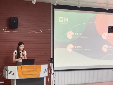 第二位分享经验的嘉宾是莫晓盈同学。莫晓盈同学在研究生期间曾任永利yl23411研究生会主席、兼职辅导员,曾获永利yl学业奖学金一等奖、陶建明奖学金等,已被广西电网有限责任公司信息中心录用。莫晓盈同学为大家介绍了研究生一、二、三年级每个阶段应该要完成的事情,并详细介绍了如何备考实习、如何选择应聘单位、如何准备简历。