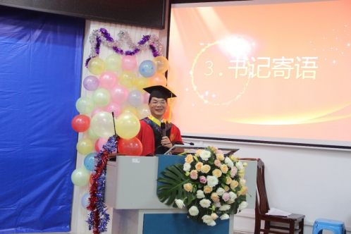 然后,公司党委书记钟诚教授致辞,向圆满完成学业的毕业生表示热烈的祝贺,并对毕业研究生寄予新的期望。