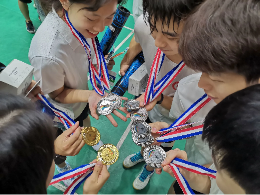 公司研究生羽毛球赛获奖选手奖牌合照