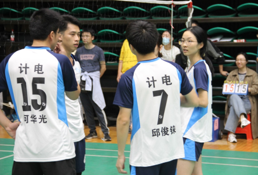 比分逼近,公司气排球队员磋商战术