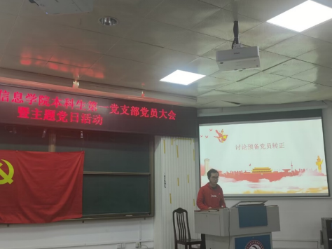 首先是讨论预备党员转正。经预备党员汇报预备期间的思想、学习和工作相关情况,两名入党介绍人分别介绍预备党员在预备期间的表现、考察情况和转正意见,党支部委员报告预备党员预备期间教育考察情况,与会的党员对预备党员能否按期转正进行充分讨论,以及无记名投票表决等程序,大会同意李兆烨同志转正。