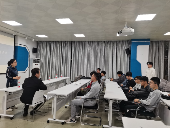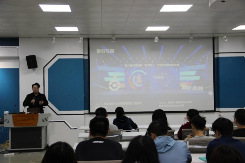 会议伊始,董蕴辉老师就“什么是挑战杯”展开培训,使同学们对“挑战杯”有了初步认识,随后向同学们详细介绍本届“挑战杯”的赛事进程,帮助同学们更好地了解比赛。培训过程中,董蕴辉老师从项目选题、申报书撰写、汇报答辩等方面为同学们做了专业且详实的培训,并就如何打磨商业计划书给出合理的建议。