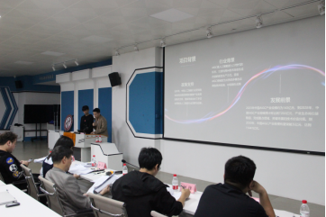 随后,董蕴辉老师对本次活动作总结发言。他首先对活动组织者和各团队表达了感谢并肯定了参赛团队项目的质量。他鼓励员工以赛促学,为创新创业注入新的活力和智慧,新时代充满机遇和挑战,希望各位同学能勇于创新、敢于突破,积极利用现有资源,发掘市场需求,推动自己的创意和项目走向实用和成功。