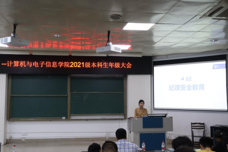2024年5月21日下午,永利yl234112021级本科生年级大会在公司214报告厅召开。公司党委副书记邓珍琪老师,2021级全体本科生、班主任及辅导员、教学办老师共400余人参加。会议由2021级带班辅导员张星月老师主持。