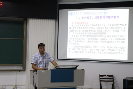 会议第二项议程,由公司党委副书记邓珍琪老师作年级学业情况分析以及安全教育、纪律教育和廉洁教育。邓老师从学业成绩、各班补考和重修情况等方面做了详细分析。他指出,优良的学风是提高公司产品质量的根本保证,是员工工作的核心部分,更是每一位员工的根本任务。同时,邓老师用身边实例,提醒同学们防诈骗、防偷盗、防火防电、防交通事故,注意人身安全、财产安全、个人信息安全,切实提升同学们的安全防范意识,引导同学们树立操守意识、规矩意识、纪律观念、底线思维,将安全牢记于心,为推动平安、文明、和谐校园建设贡献青春力量。