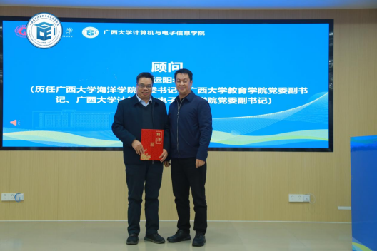 图8 员工办公室主任周海斌为员工会顾问谭运阳颁发聘书