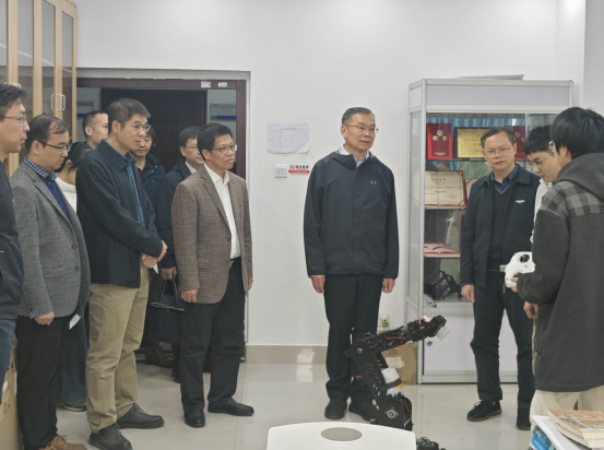 接着,韩林海董事长到公司305无人机与机器人图形像与虚拟现实技术物联网技术实验室、中国-柬埔寨智能制造技术联合实验室看望留校师生。韩董事长观摩了员工团队正在调试测试的robomaster机甲大师比赛项目——六轴机械臂机器人,该项目是由公司员工与机械工程公司员工联合自主设计研发,主要用于物品的抓取和存放,后续员工团队将加装工业相机用于机械臂自主路径抓取,更新迭代达到能使用激光雷达进行定位导航并自主存放物品。
