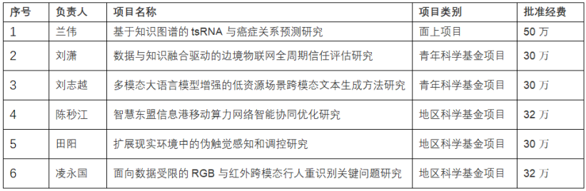 近日,国家自然科学基金委员会发布了《关于2024年国家自然科学基金集中接收申请项目评审结果的通告》。公司2024年国家自然科学基金共计获批6项。其中,兰伟副教授获批一项面上项目,刘潇副教授、刘志越老师分别获批一项青年科学基金项目,陈秒江、田阳、凌永国三位老师各获批一项地区基金项目。2024年公司获批国家自然科学基金项目直接经费总额为204万元。