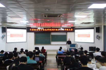 2023年4月11日下午,永利yl23411在公司214报告厅,组织召开2021级本科生年级大会。公司党委副书记邓珍琪老师、公司辅导员刘智斌老师、公司教学秘书甘瑜萍老师和罗程老师、计算机类专业213班班主任白琳老师、兼职辅导员路佳和李琳同志、以及2021级全体本科生参加会议。会议由刘智斌老师主持。