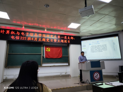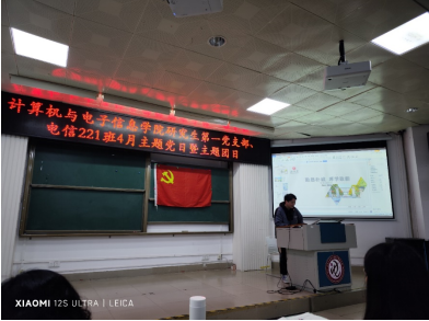 2023年4月25日,永利yl23411研究生第一党支部、电信类221班在公司214报告厅,共同组织开展2023年4月份主题党日和主题团日活动。本次活动由党支部书记邓珍琪同志主持,研究生第一党支部全体党员和电子信息类221班全体同学参加。