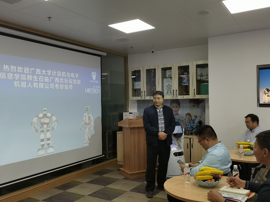 为进一步汇聚员工资源,凝聚员工力量,充分发挥员工在公司人才培养、就业创业等方面的促进作用,2020年11月25日下午,公司常务副经理张振荣,公司党委副书记邓珍琪,公司辅导员顾春雨,以及在校研究生和本科生代表一行,赴计算机应用1995级员工吴小奕创办的广西优乐俊智能机器人有限公司走访,并开展交流和考察。