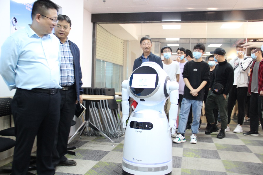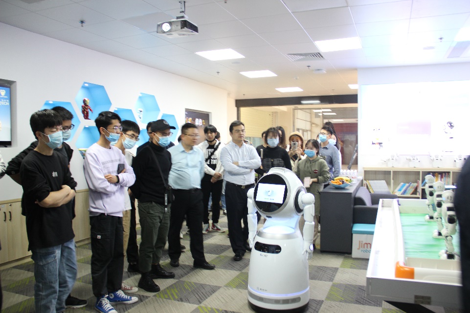 首先,大型商用机器人Cruzr带领公司师生参观公司,老师和同学们都为Cruzr的精彩讲解所吸引,并不断响起热烈的掌声。
